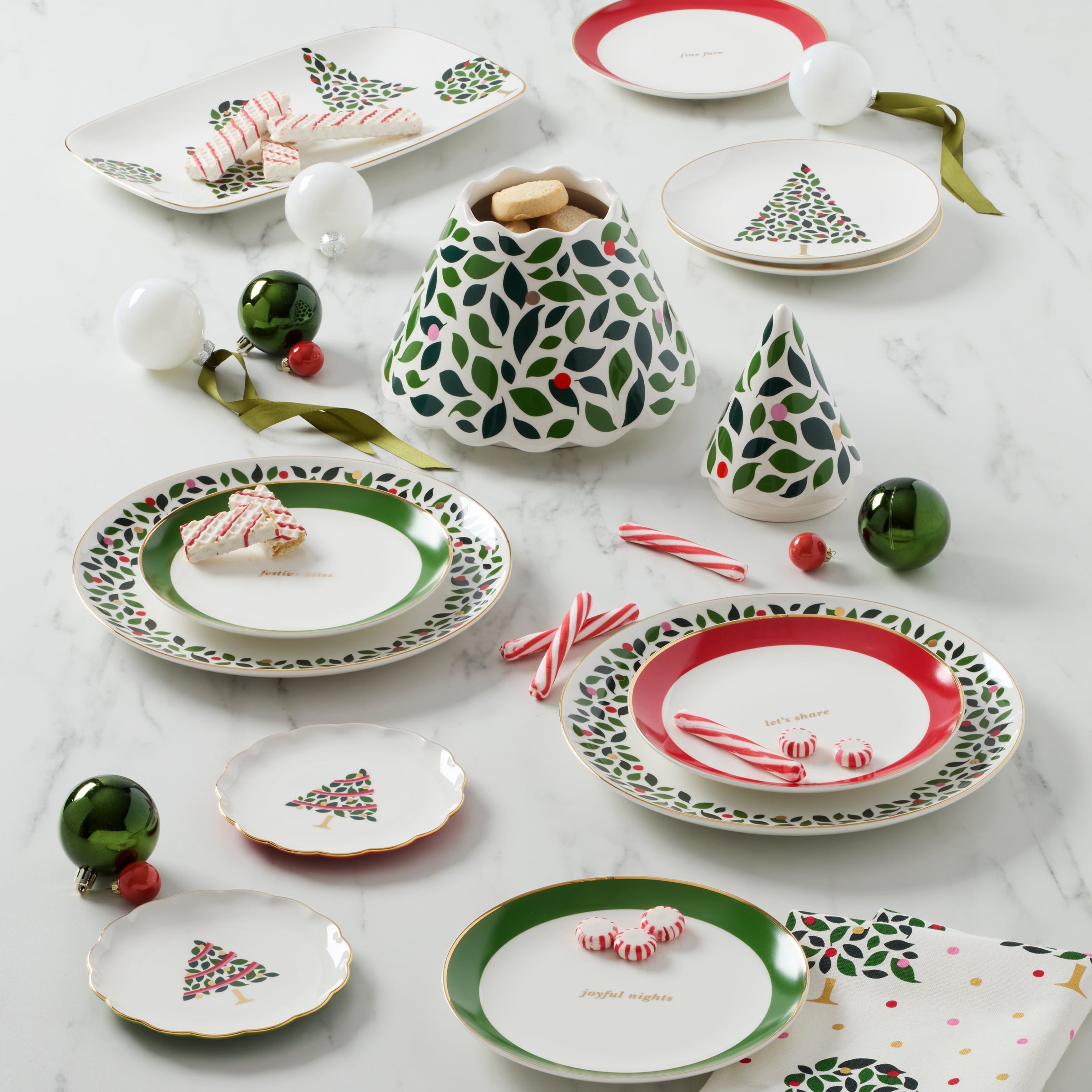 Add festive flair to your home and table with this Evergreen treat jar from kate spade new york. Decorated with bright and cheery holly leaf motifs, this Christmas tree treat jar is perfect for playful Christmas celebrations.