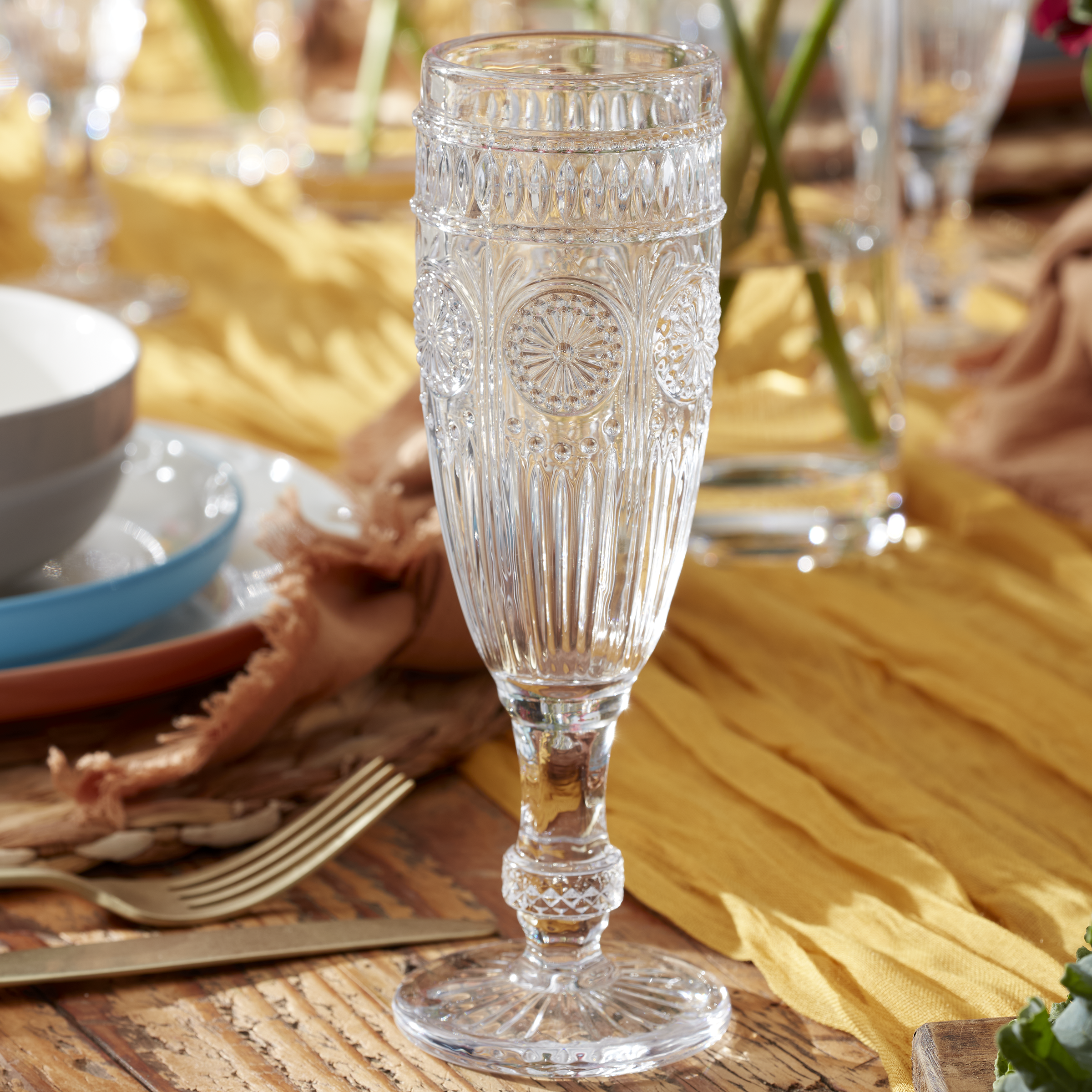 Somewhere between contemporary boho and clear kaleidoscope are these stunning 5-oz soda lime glass flutes. Designed to complement the Fiesta Beverage Dispenser, the substantially weighted beauties fit in at any gathering. Set them on the table and let the festivities begin! From Earth & Nest, a brand we love.