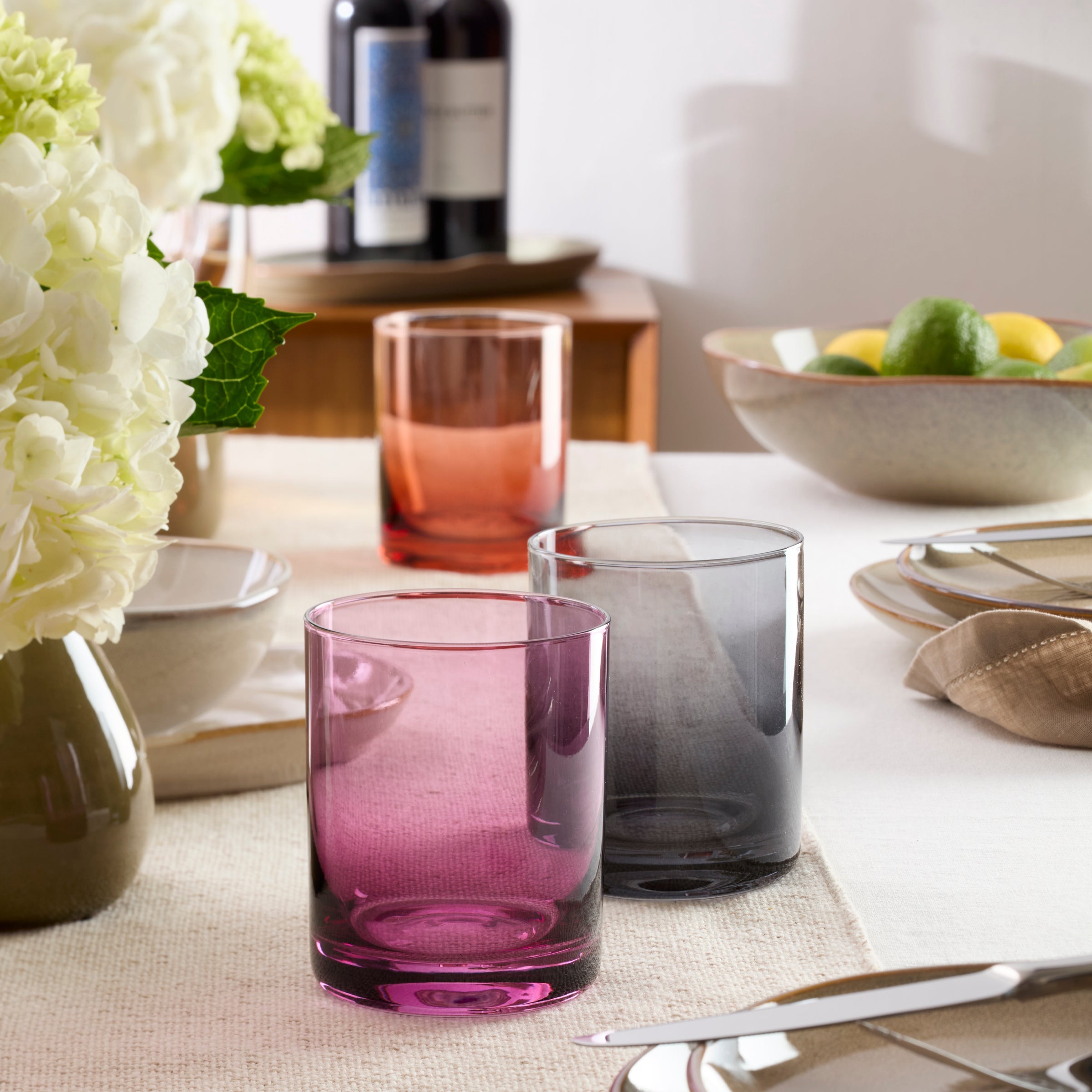 Saturated jewel tones borrowed from summer sunsets are the perfect match for impromptu parties on the rooftop deck. Whether it’s mimosas at brunch or cocktails after dark, the event is instantly elevated by Golden Hour’s refreshing ombre double old-fashioned glasses.