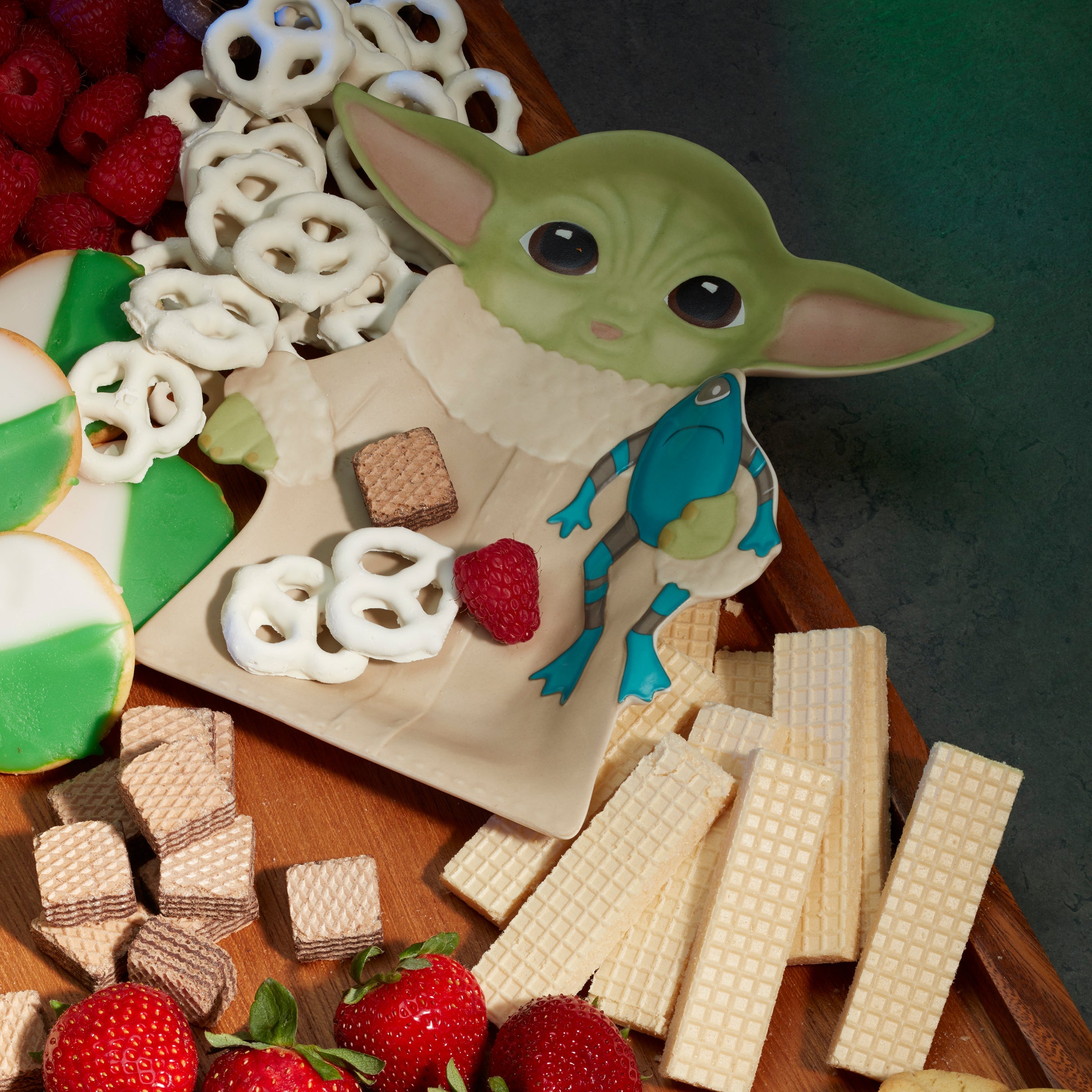 Everyone’s favorite foundling is venturing right into your entertaining space! And looks like he’s snatched himself a Sorgan frog to snack on. (Didn’t know you kept those in your cabinets…) You might as well join in. Satisfy your own sweet or savory tastes on a Star Wars-themed dish that’ll have your guests gushing over the cutest lil’ guy in the galaxy.