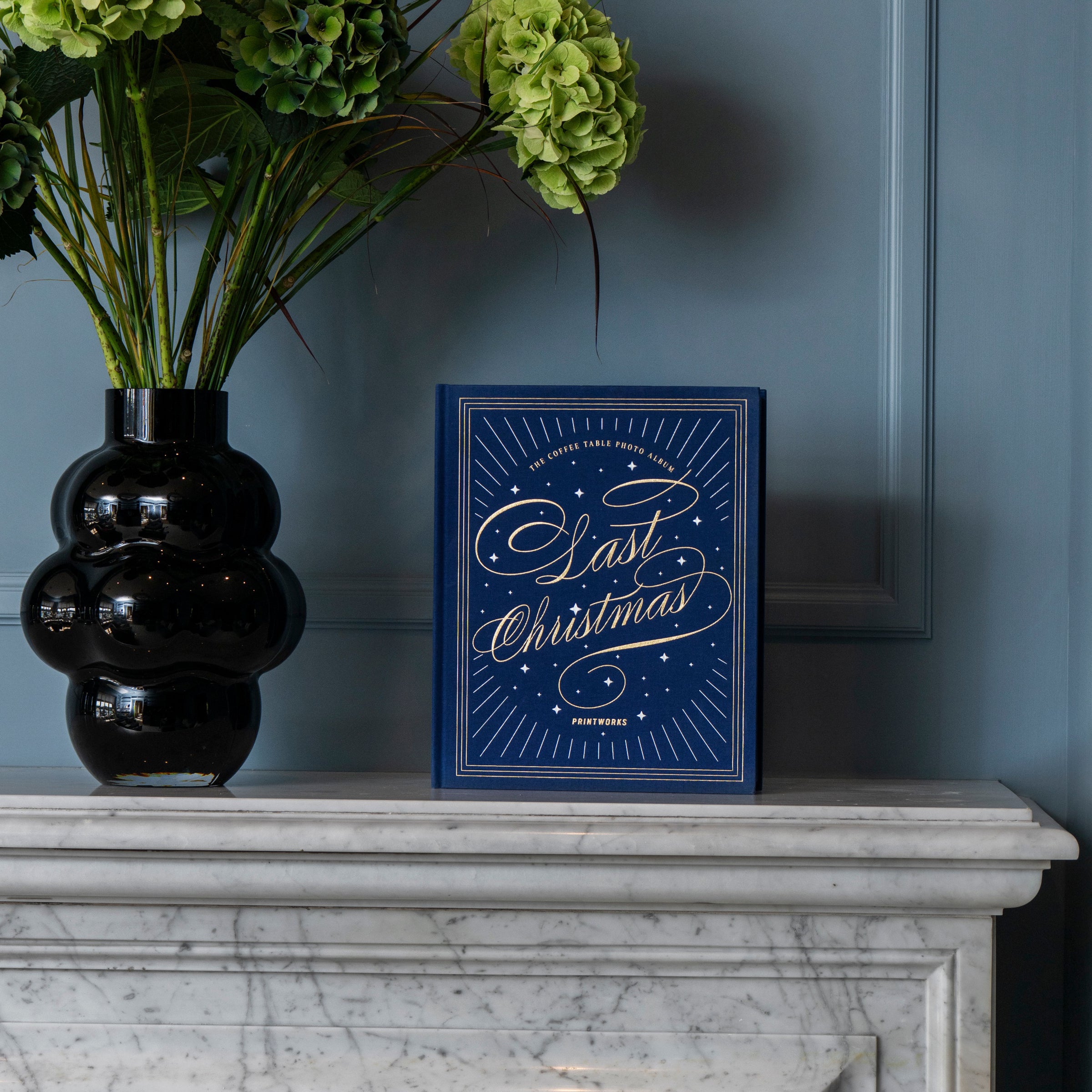 Discover the holiday coffee table photo album dedicated to the best season of the year. “Last Christmas” features a beautiful navy cloth cover with gold foiled text. High-quality black photo paper awaits inside, ready to be decorated. Place it on your coffee table to keep those moments always within reach while elevating your home decor. From Printworks, a brand we love.