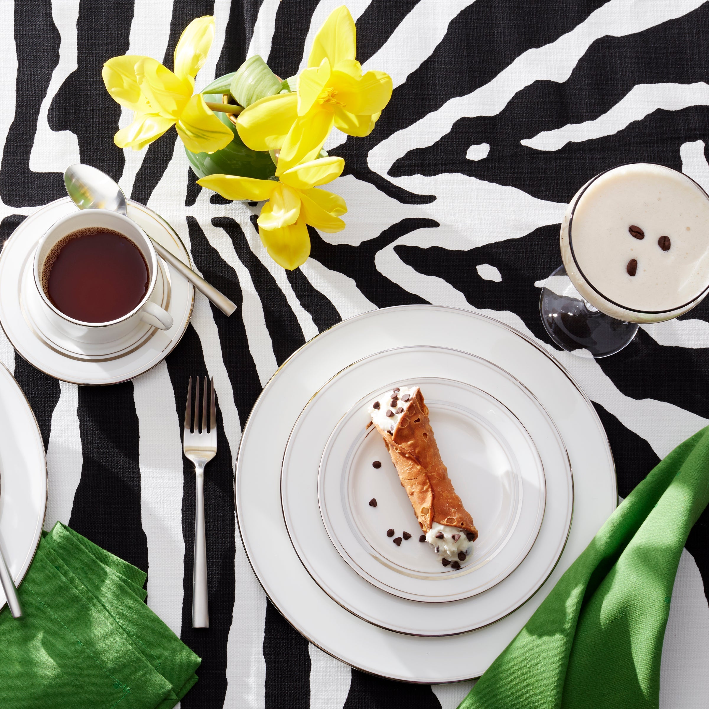 Bands of platinum lend the Library Lane Platinum Collection a sophisticated look. From Kate Spade New York, this saucer is crafted of durable white bone china with precious platinum accents, and is dishwasher-safe.