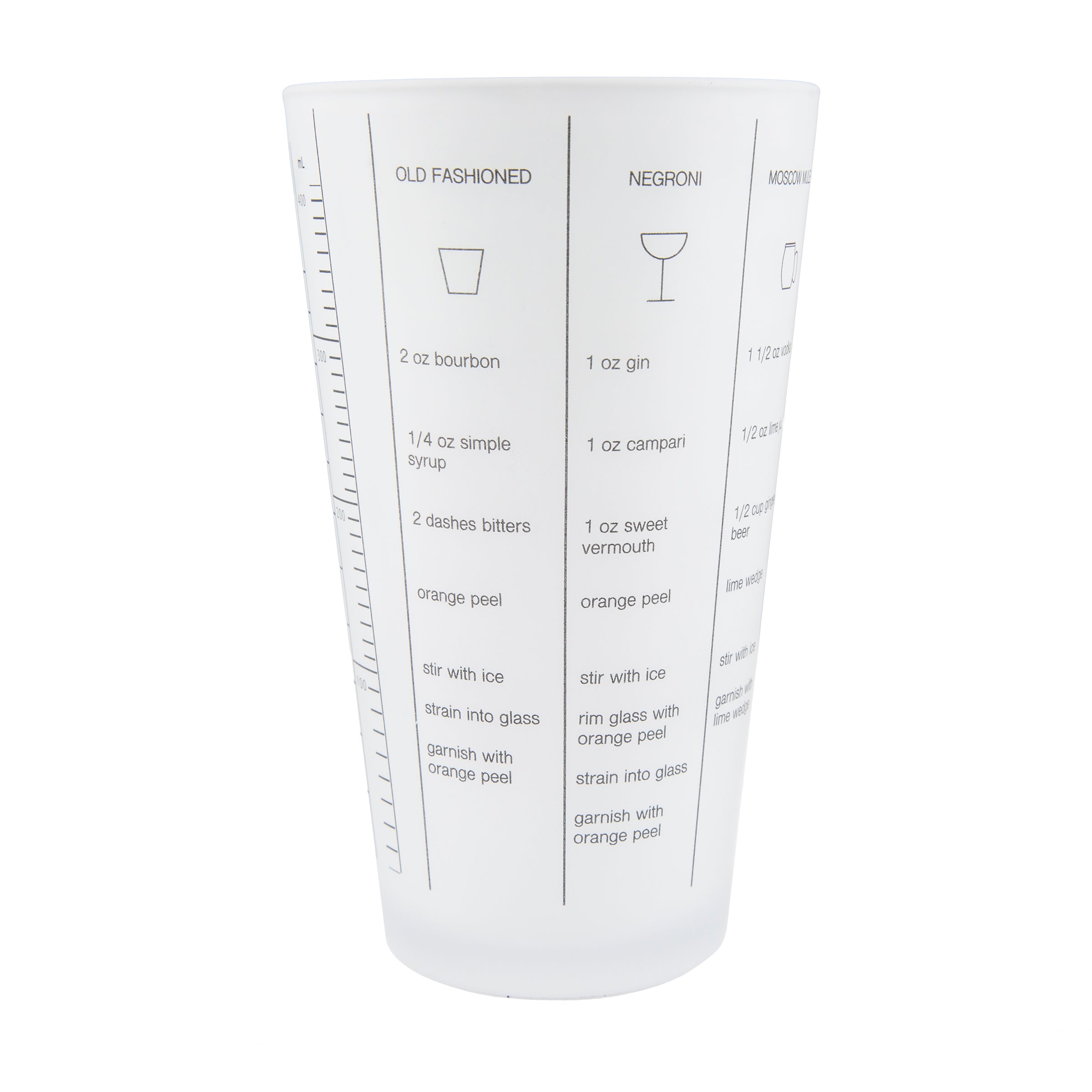 Always have your favorite drink recipe handy with this 15 oz mixology set. This 5-piece set contains a glass recipe shaker, double jigger, stirrer, tongs, and wooden muddler. The shaker includes recipes and instructions printed right on the glass for classic drinks like the Margarita, Old Fashioned, and Martini. The set includes a built-in strainer and the tumbler can be used as a drinking vessel. All tools are constructed of stainless steel. Muddler is acacia wood.