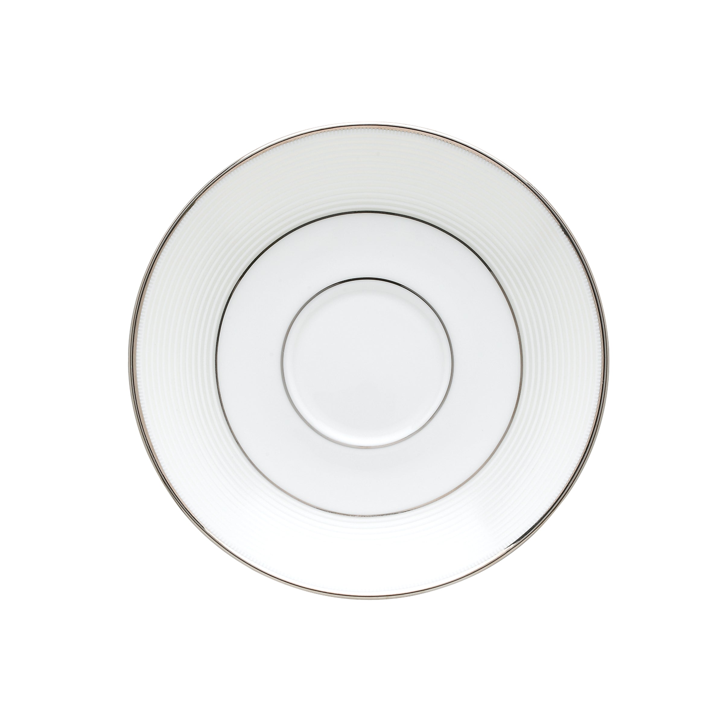 The elegant and versatile Opal Innocence Stripe Rimmed Bowl features convenient wide rims for easy handling, and features a textured motif of raised white ribbons. This ornate and durable bone china soup bowl is accented in precious platinum, and is dishwasher-safe for added convenience.