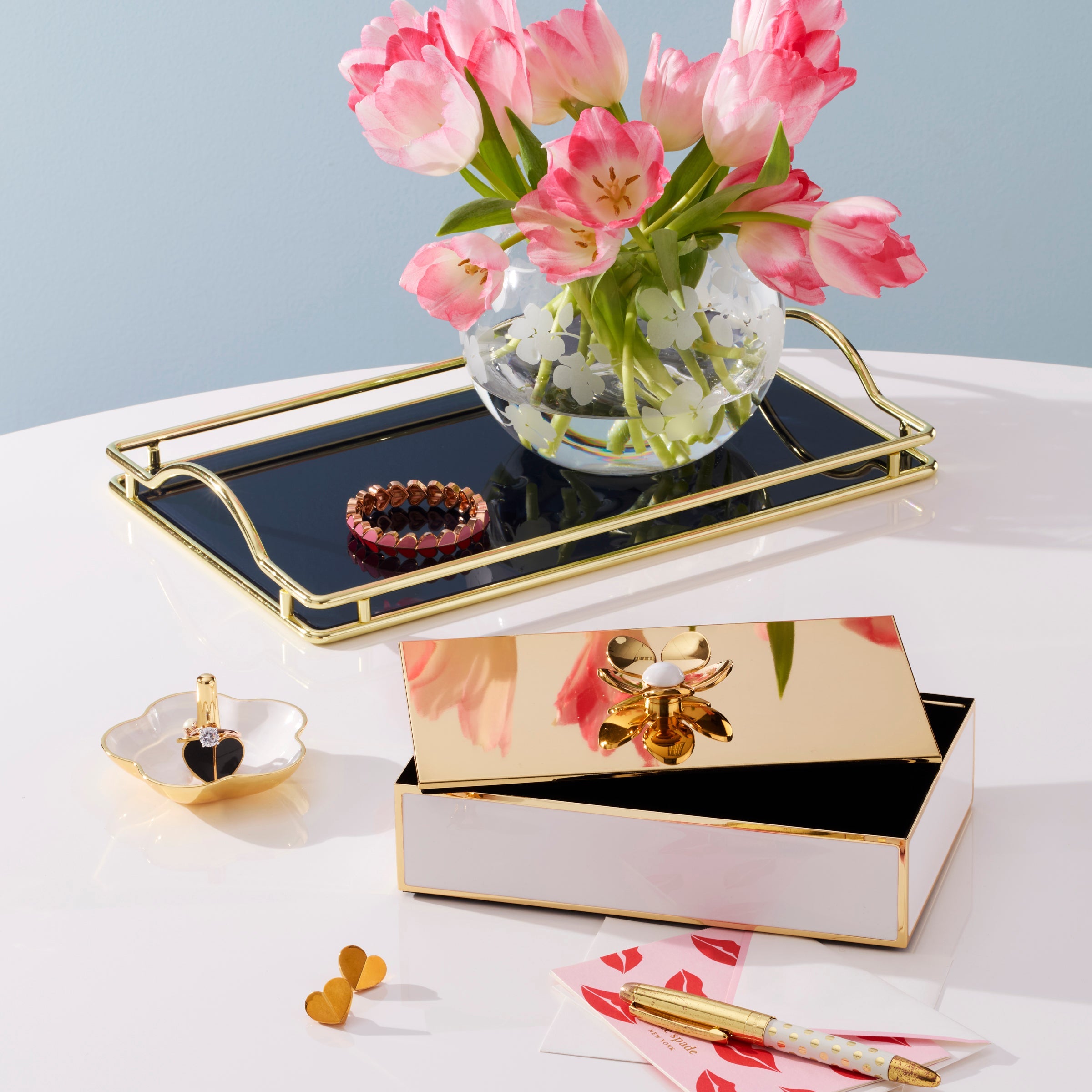 Display your favorite flowers in the Spring Pansies glass rose bowl from Kate Spade New York for a burst of your favorite season all year long.