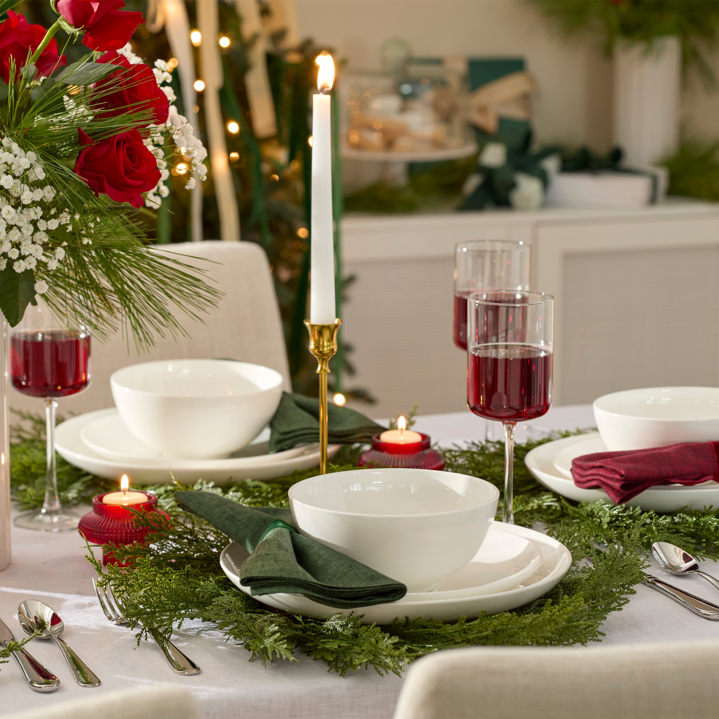 The world is complicated. Setting the table doesn’t have to be. Studio 1414 is refreshingly simple premiere bone china, expertly designed and passionately perfected to be your for-anything, for-forever dinnerware. It’s the essential staple you need and the something special you want, with a bright white glossiness that elevates every occasion. The chic Coupe shape of this 24-piece set lets pairings and platings get the attention due. Dishwasher and microwave safe. Service for 8.