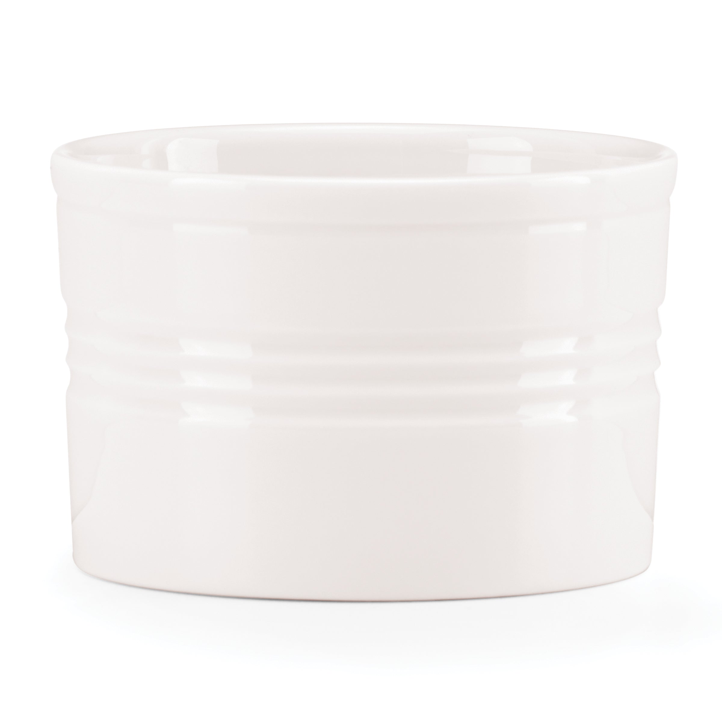 The Tin Can Alley coupe saucer adopts the tin can’s emblematic corrugated rings on durable white porcelain for a simple, aesthetic design.