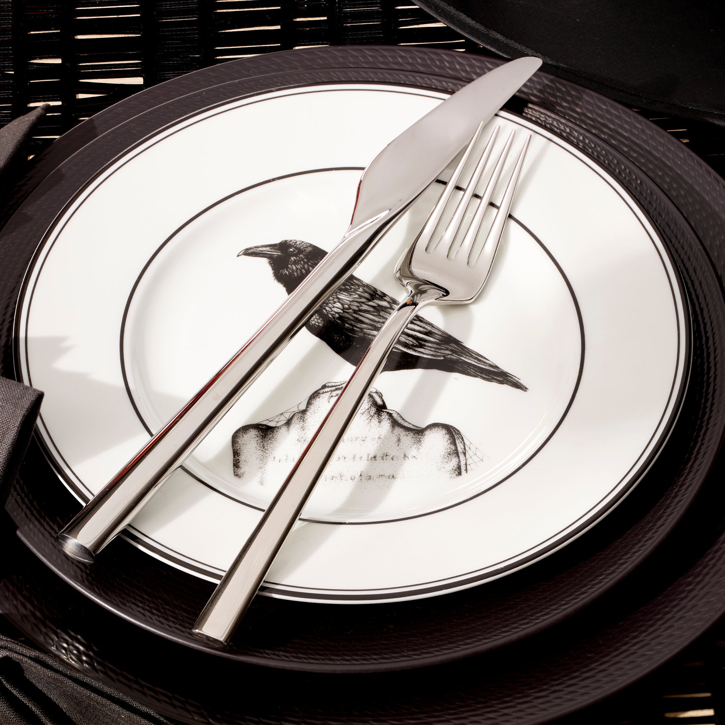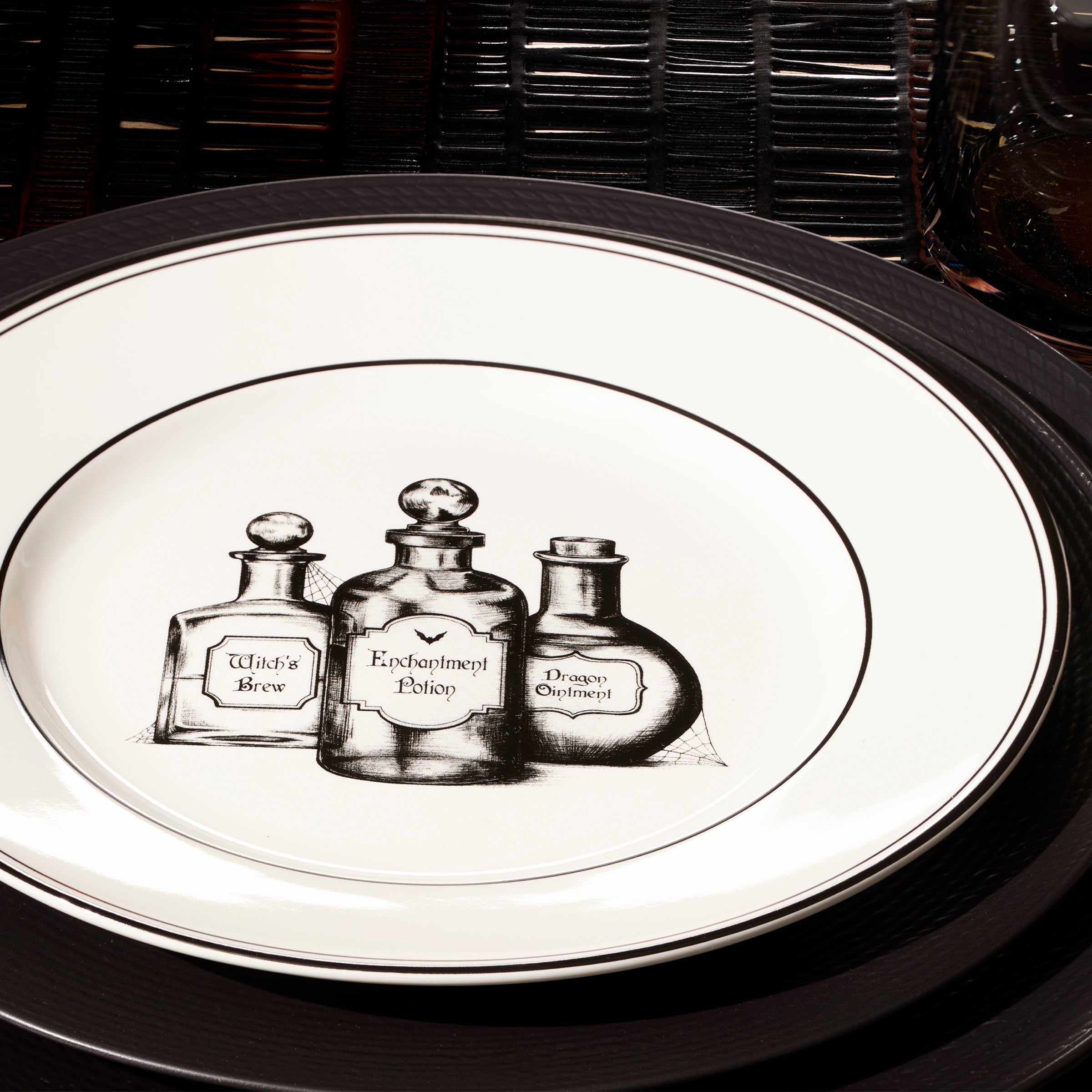 A wickedly enchanting assortment, our Vintage Halloween collection brings a bit of haunted mystery to your home. This 4-piece dessert plate set is crafted of ivory porcelain and features hand-drawn artwork of a chandelier, a raven, potions and a candelabra. It’s perfect for serving treats this Halloween season!